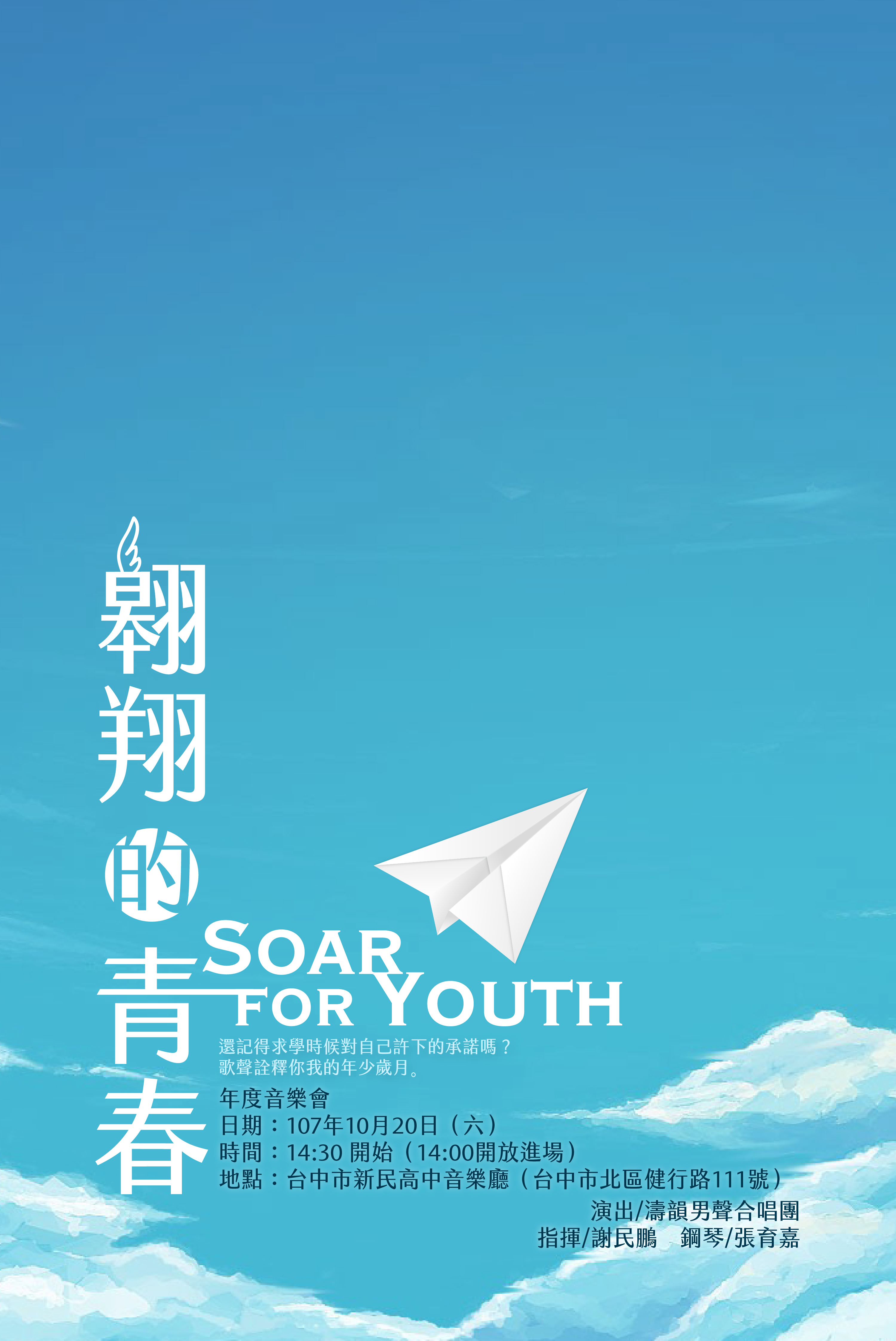 濤韻男聲合唱團 年度音樂會《翱翔的青春》,2018.10.20乘載青春記憶,在飛揚的旋律中,邀請您與我們一同展翅高歌。